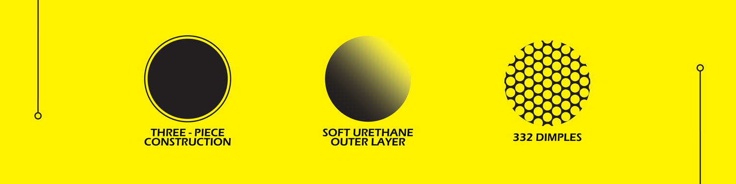 - 3-piece construction with a soft urethane outer layer for increased control.